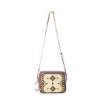 Keep your essentials close and your style authentic with this distinctive and compact bag. This western crossbody purse features a rich, dark brown exterior that perfectly frames the striking Southwestern-inspired geometric panel on the front. The pattern is a beautiful blend of cream, teal, and earthy brown shapes, giving the bag an artisanal, woven rug aesthetic. The dark brown body is complemented by a bold, patterned strap that reinforces the Western theme. Designed for hands-free ease, this bag is a must-have among small western crossbody purses, offering secure zippered compartments and a convenient tassel zipper pull. It’s the perfect size for errands, concerts, or any time you need style without the bulk.
